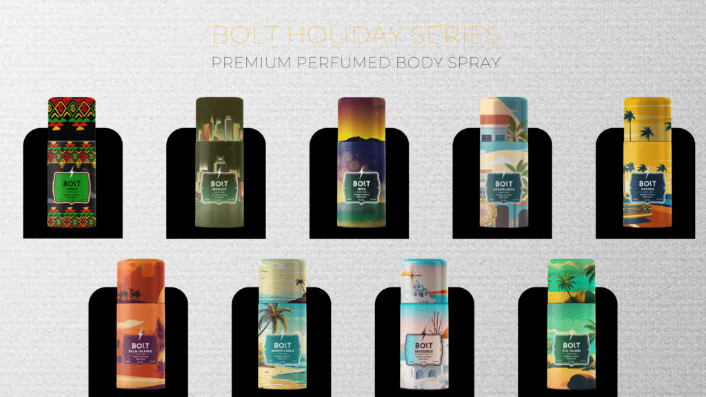BOLT redefines body sprays with globally inspired collections, each scent capturing the spirit of different places, moments, and emotions.